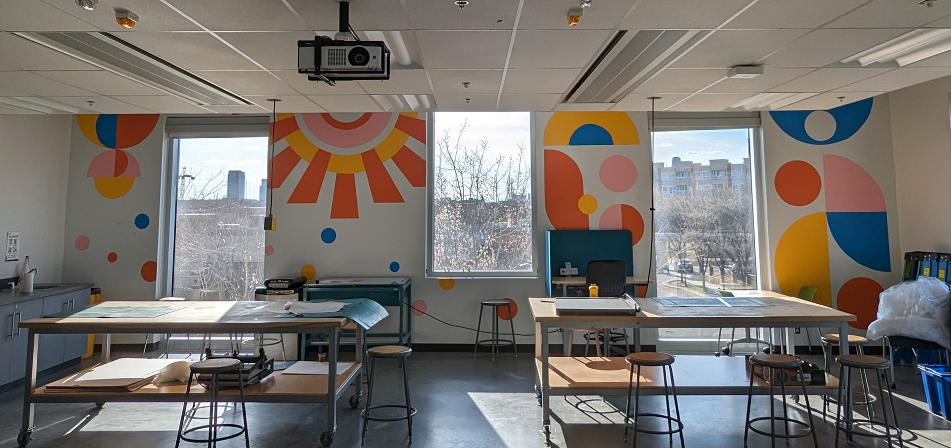 Being part of the DSO has given me opportunities to inject my creativity into community spaces. The workroom is home to many MacEwan design students as we would spend day and night working to finish projects. What was once a white, empty, stark wall, is now a colourful vibrant sight to see.